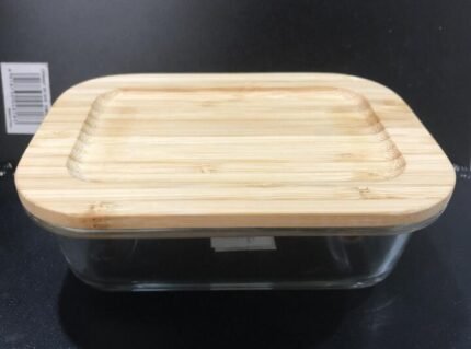 Product name Glass lunch box with bamboo wood lid Material High borosilicate glass/ Bamboo wood lid Logo Silk screen/ Sticker