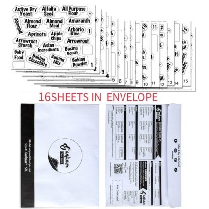 Specification item value Type Adhesive Sticker Feature Waterproof Custom Order Accept Size 28cm*22cm quantity 16 SHEETS 380STICKERS Style pantry labels