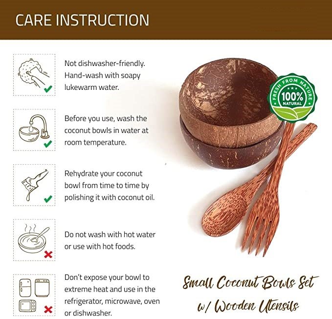 Custom Printed Natural Coconut Shell Bowls With Spoon – Free Logo Printing