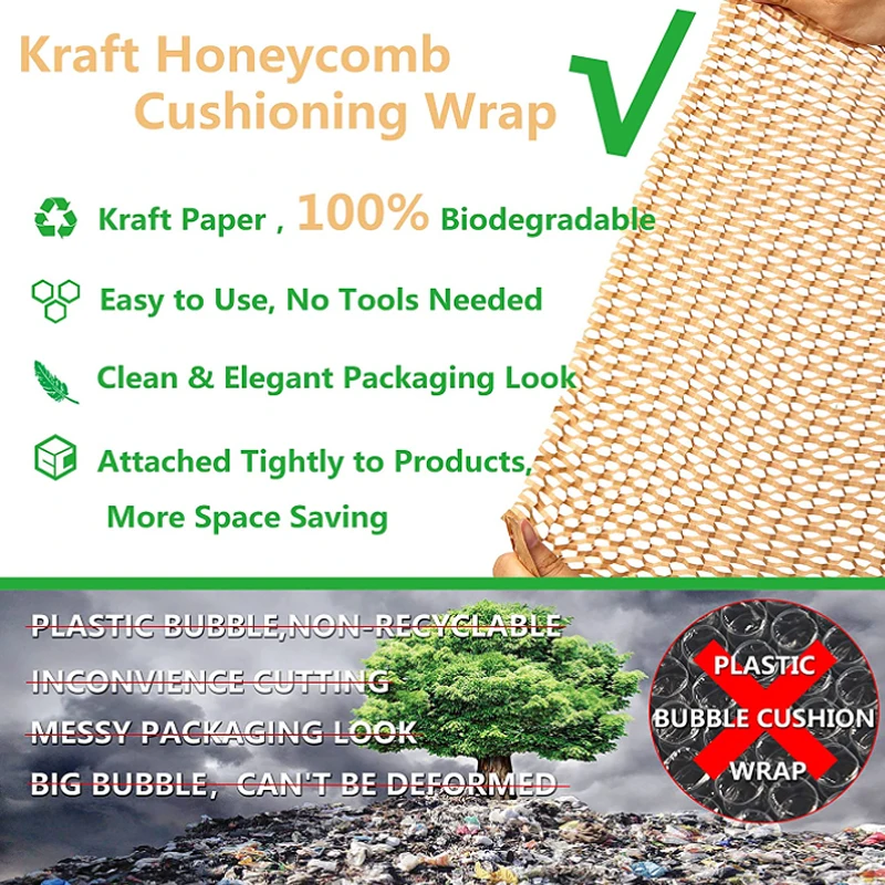 paper is made of recycled kraft paper, which can be extended into 3D honeycomb structure.Traditional Plastic bubble is at the cost