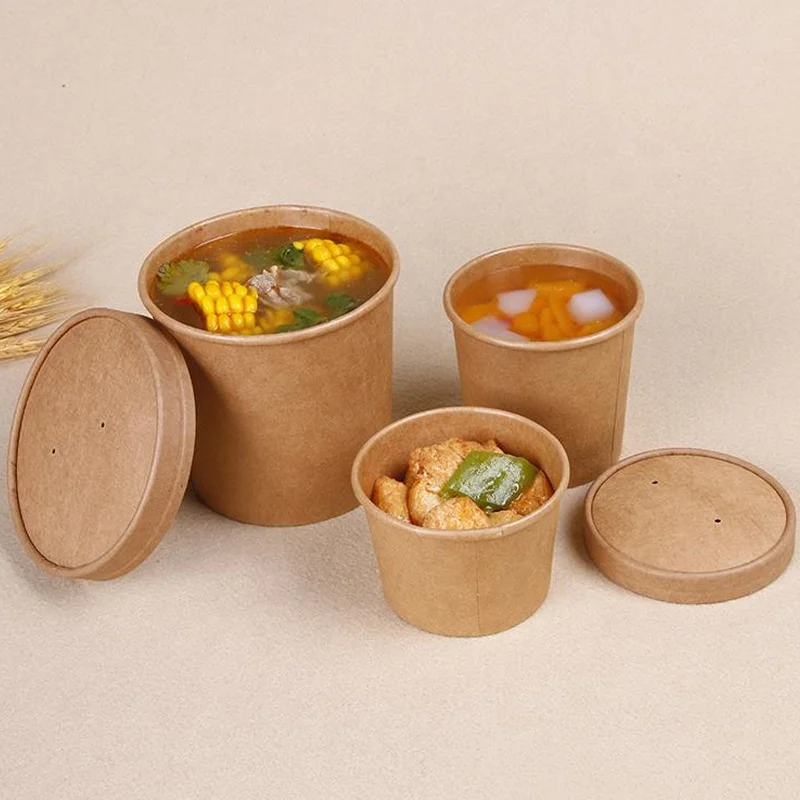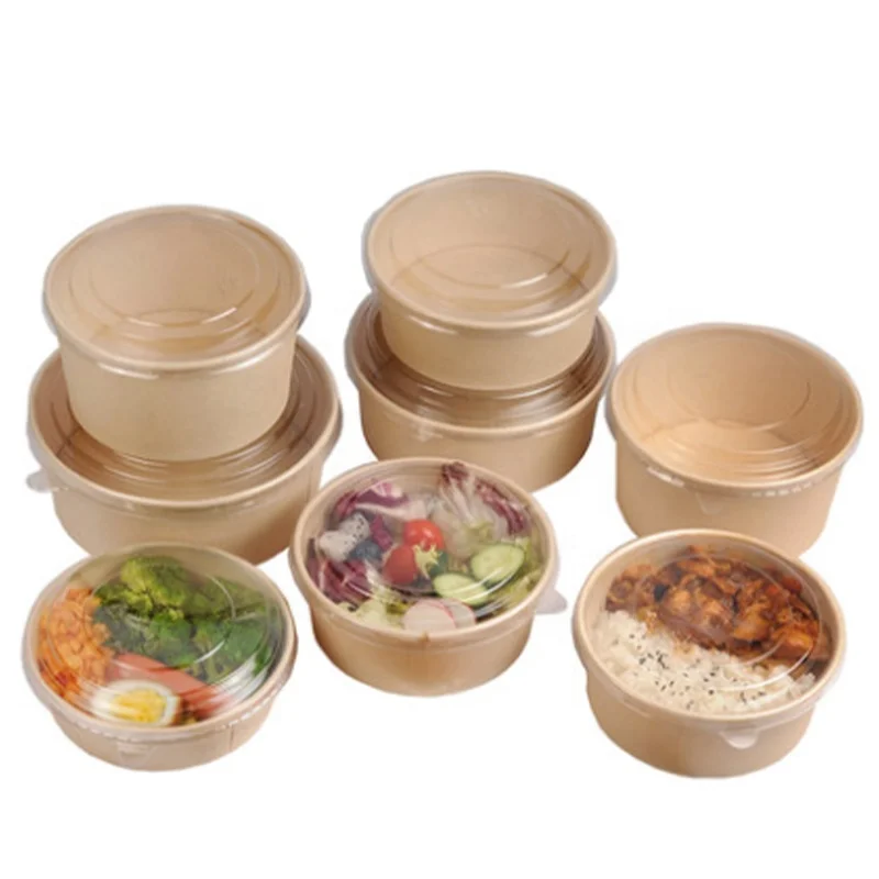 Disposable Round With Lid White Soup Kraft Paper Salad Bowl