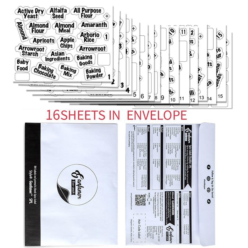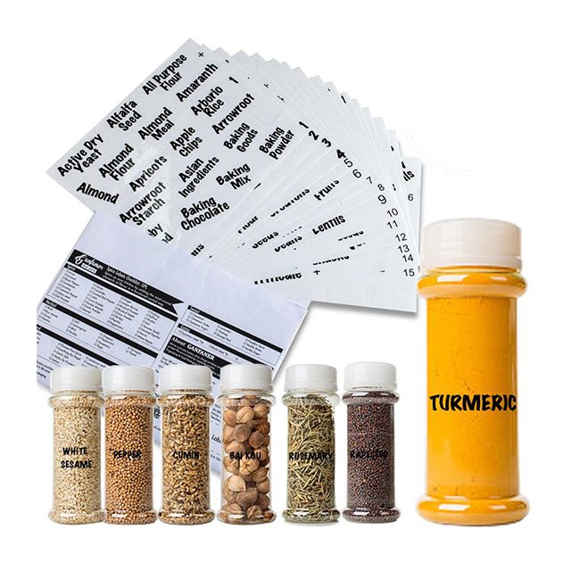 Pantry Labels in Cursive includes 380 most common used ingredients in black cursive font, 16 different sheets included. Stickerwill adhere to your containers or bins, no rubbing required. Just in case a particular label is not available, we included 16 numbered labels so you can easily identify those contents.