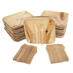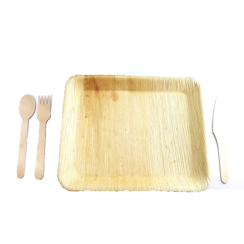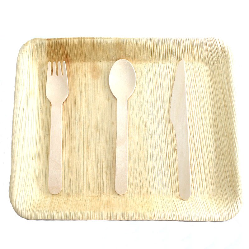 Rectangle shape 8*10″ palm leaf disposable plates with birch wooden cutlery