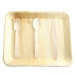 Rectangle shape 8*10″ palm leaf disposable plates with cutlery