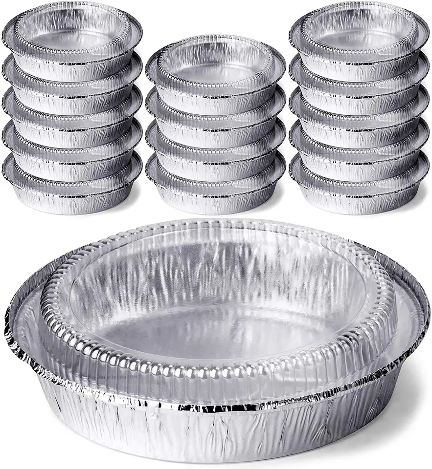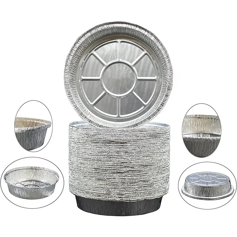 Round Disposable Aluminum Food Containers – Versatile and Convenient Solution for Catering, Takeout, Meal Prep and Food Storage. Made of Durable Aluminum Material. Durable Disposable Aluminum Food Containers – Superior Solution for Stackable Food Transport. Benefits: Convenient and easy food storage, sturdy and durable aluminum material, versatile round shape, cost-effective, eco-friendly.
