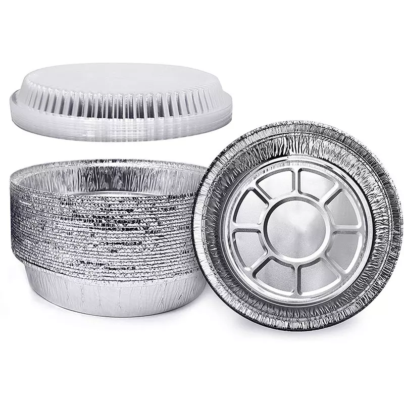 7″ , 8″, 9″ – Round Sturdier, Convenient Disposable Aluminum Food Containers with Dome-Shape Clear PET Plastic Lids – Perfect for Catering, Takeout, and Food Storage. Packed 500pcs/Carton. We Offer Free PET Lids Depending on Your Order Quantity.