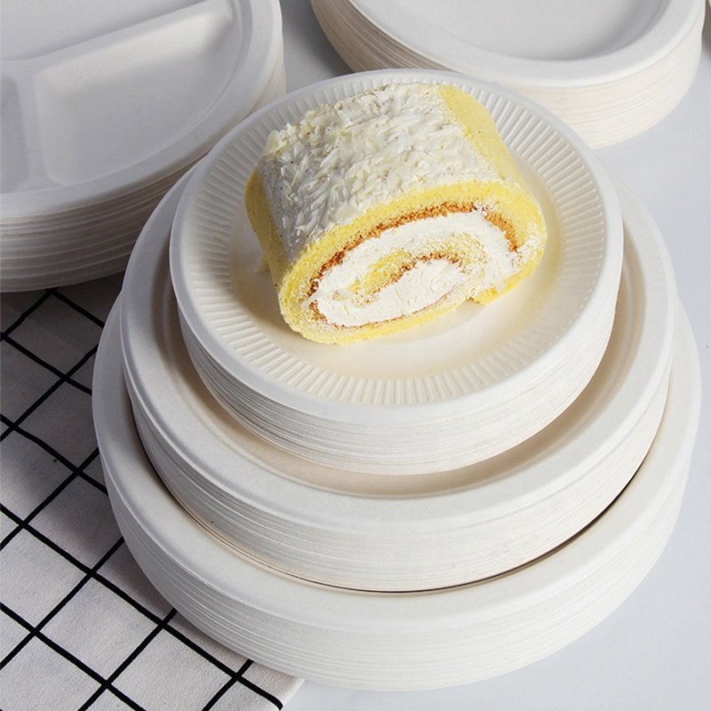 Home Bamboo-pulped Packaging Wheat Straw Molded Pulp Compostable 10″ Plate (Packed 500)